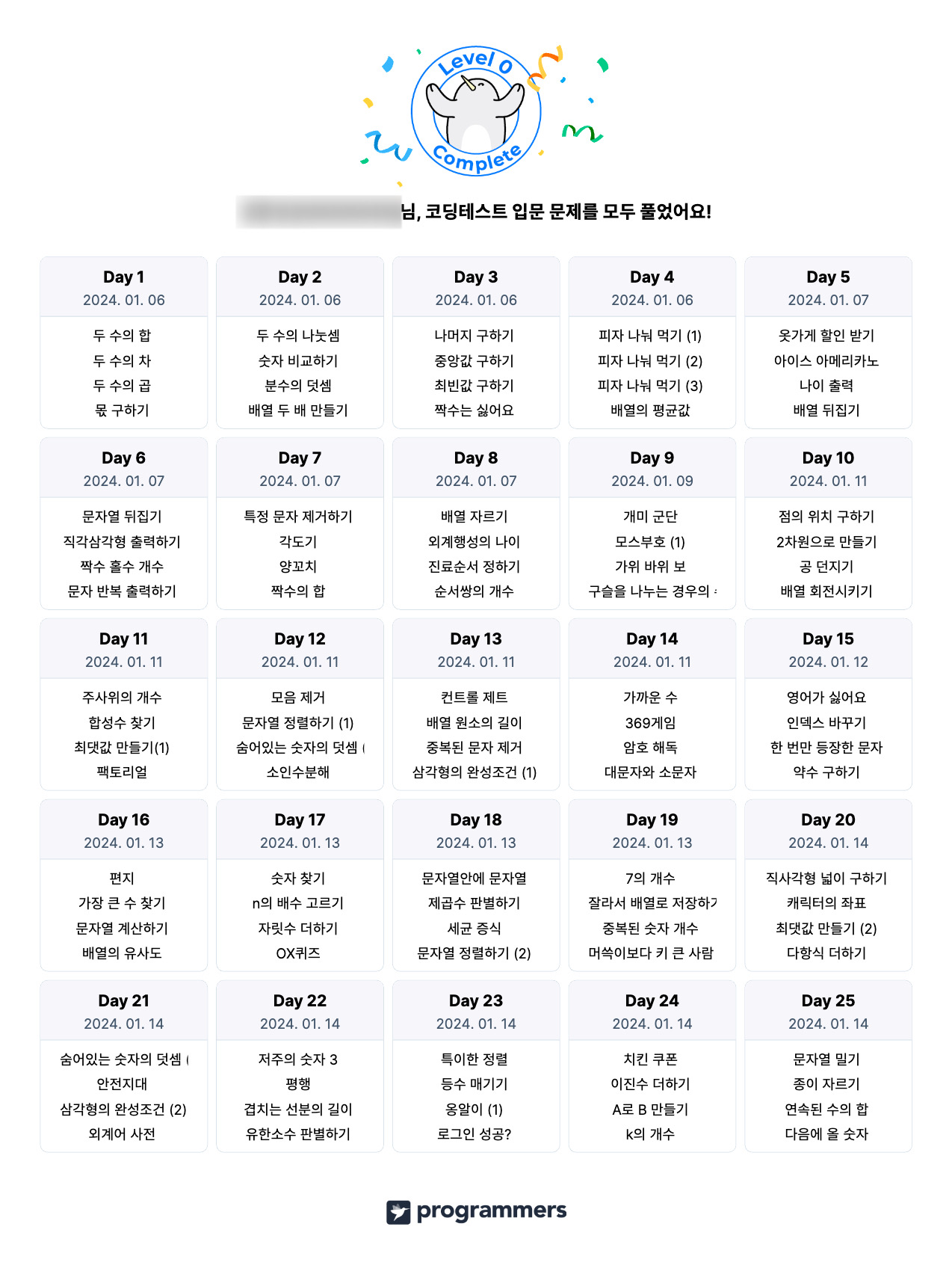 프로그래머스 코딩테스트 입문 100문제 풀이 완료 !