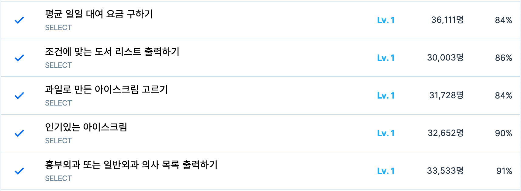 모든 문제는 MySQL로 풀이했습니다 ❕