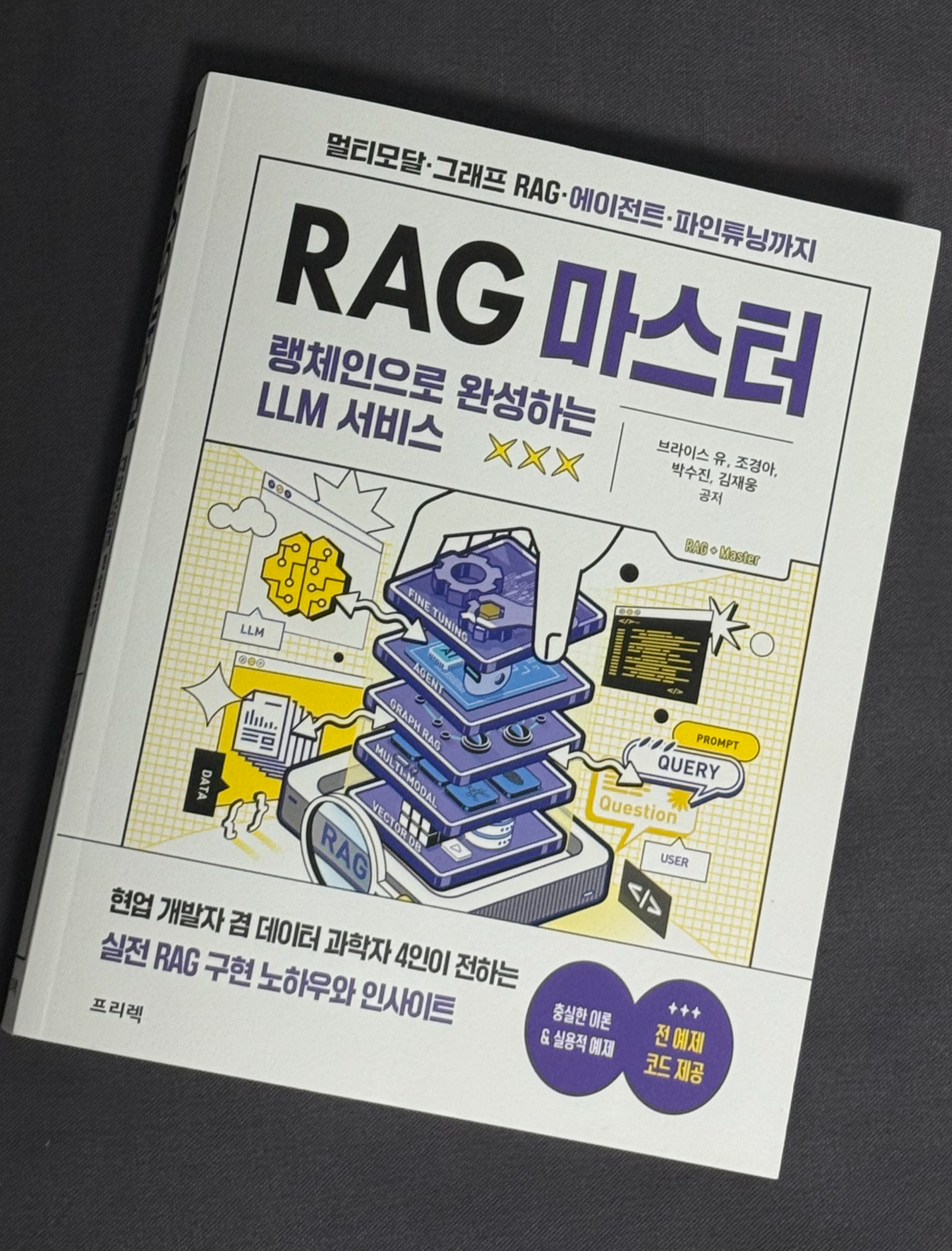 오늘 소개할 책은 ⌜RAG 마스터: 랭체인으로 완성하는 LLM 서비스 (브라이스유, 조경아, 박수진, 김재웅)⌟이다.