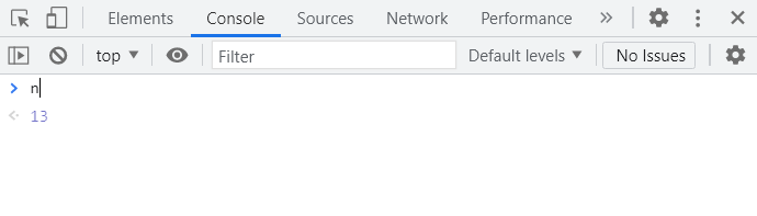 위의 코드를 실행하고 console에 n을 입력한 후 enter키를 누르면 n의 값이 제대로 출력되는 것을 볼 수 있다.