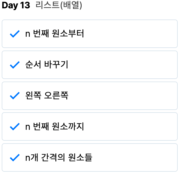 [코딩 기초 트레이닝] Python 13일차 (n 번째 원소부터, 순서 바꾸기, 왼쪽 오른쪽, n 번째 원소까지, n개 간격의 원소들)