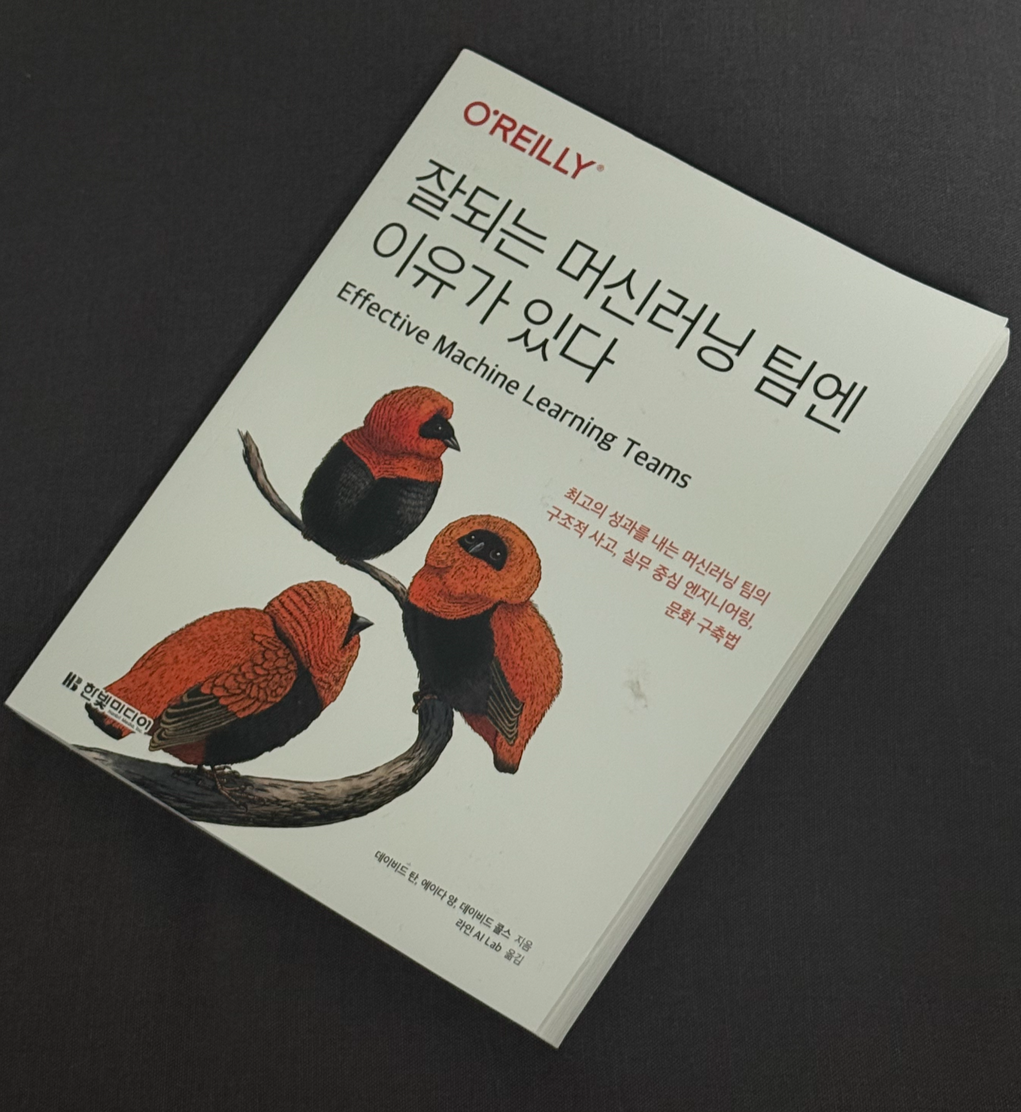 오늘 소개할 책은 잘되는 머신러닝 팀엔 이유가 있다 (데이비드 탄, 에이다 양, 데이비드 콜스)이다.